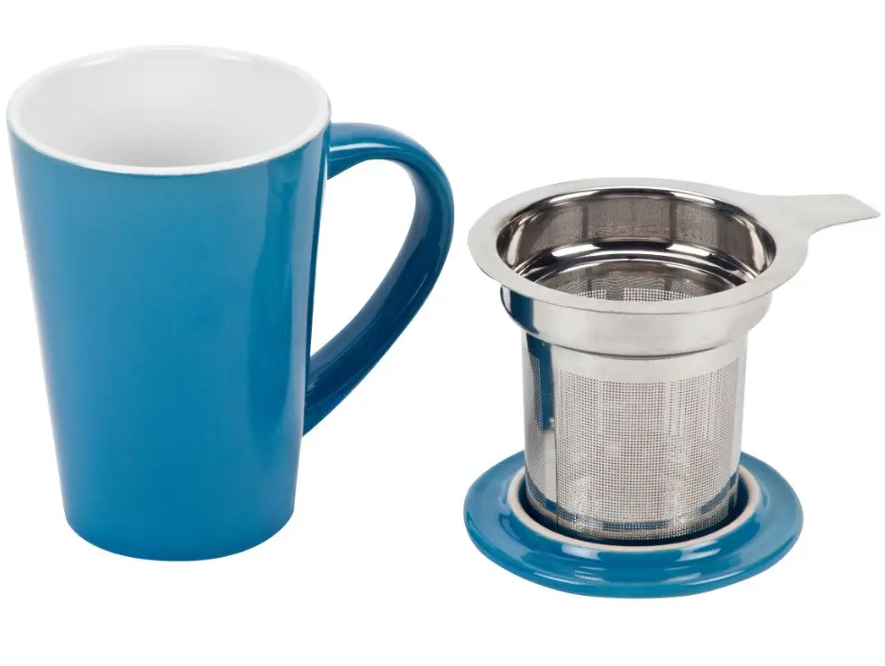 כוס פורצלן איכותית עם רשת לחליטה ומכסה, מושלמת לתה, ארוזה באריזת מתנה, נפח: 330 מ"ל. כמות יחידות בקרטון: 24.