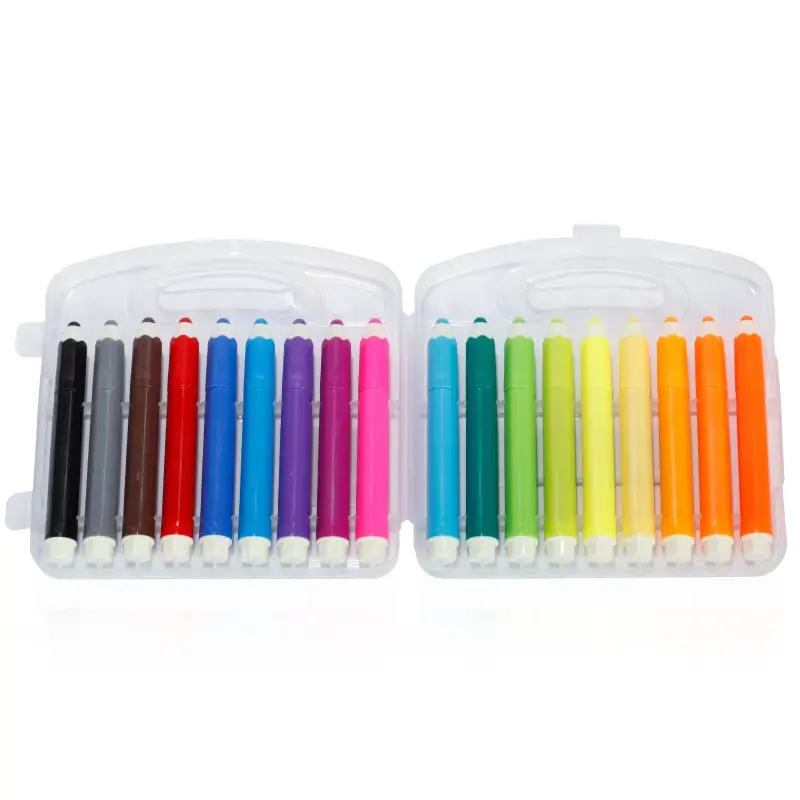 מזוודה קשיחה עם 18 טושים (מינימום 24 יח לרכישה. נמכר בכפולות של 24 יח ) מזוודה קשיחה עם ידית נשיאה המכילה 18 טושים צבעוניים 17X13.5 ס”מ גודל מדבקה: 14X6 ס”מ