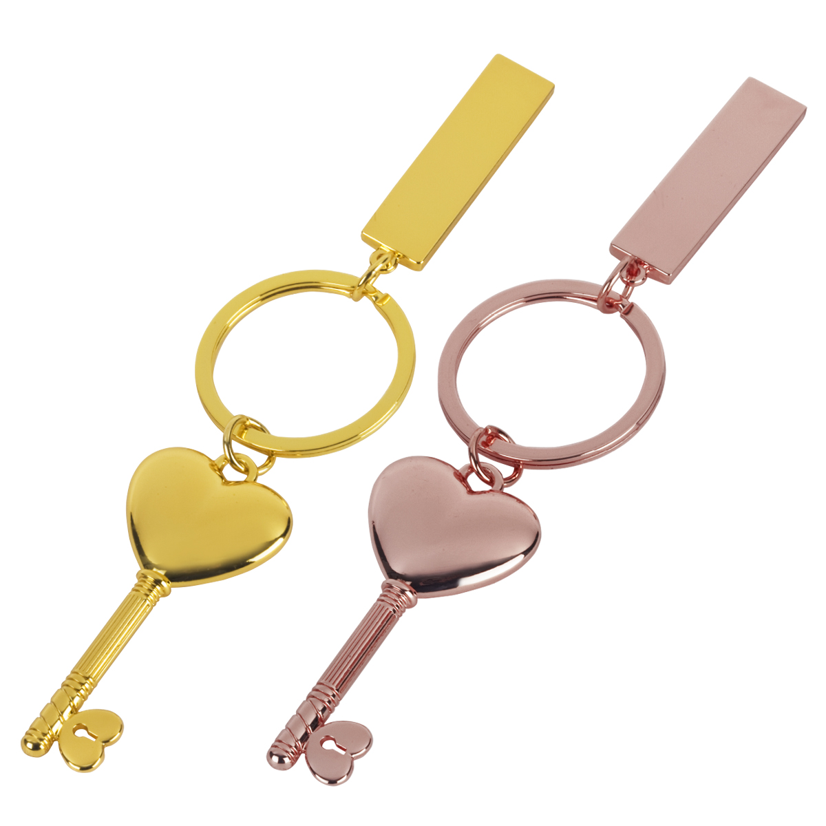 מחזיק מפתחות בצורת מפתח לב מחזיק מפתחות מתכת. תליון בצורת מפתח לב . לוחית נוספת לחריטה או להדפסה. כל יחידה ארוזה בקופסה