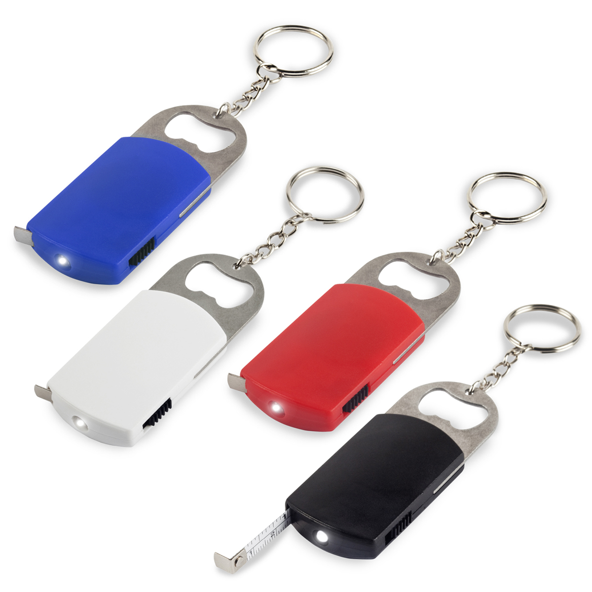 מחזיק מפתחות פותח בקבוקים עם מטר ופנס להדפסה ומיתוג