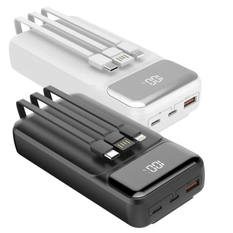 מטען נייד מהיר בטכנולוגית PD מטען נייד בטכנולוגית PD המספק הטענה אולטרה מהירה עד פי 3.6 מטעינה רגילה לדוגמה: טעינת סמארטפון מ־0% ל־50% בתוך כחצי שעה סוללה 20,000 MAH, הספק טעינה 22.5W מסך תצוגה דיגיטלי 3 כבלים מובנים להטענה (Type-C / Lightning / USB) עם יציאת USB ו-2 יציאות Type-C מתאים למגוון טלפונים ניידים 14.4X3X6.9 ס"מ