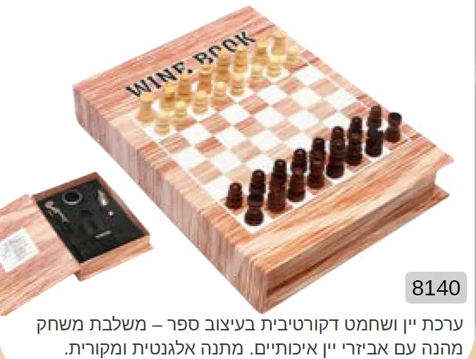 ערכת יין ושחמט דקורטיבית בעיצוב ספר -משלבת משחק מהנה עם אביזרי יין איכותיים מתנה מקורית