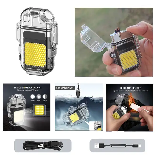 פנס קוב משולב עם מצית אלקטרונית מיני רב שימושי עוצמתי