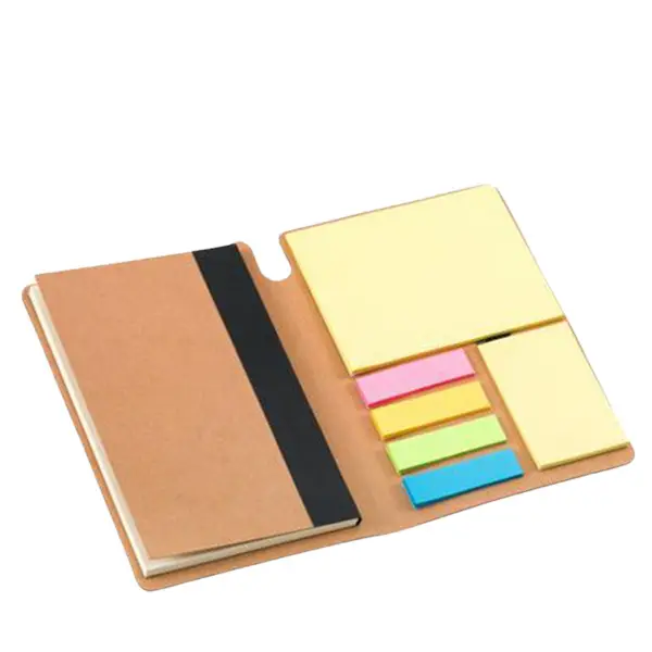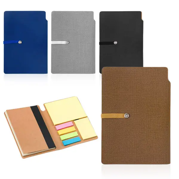פנקס A6 דמוי עור מעוצב עם דבקיות ומקום לעט