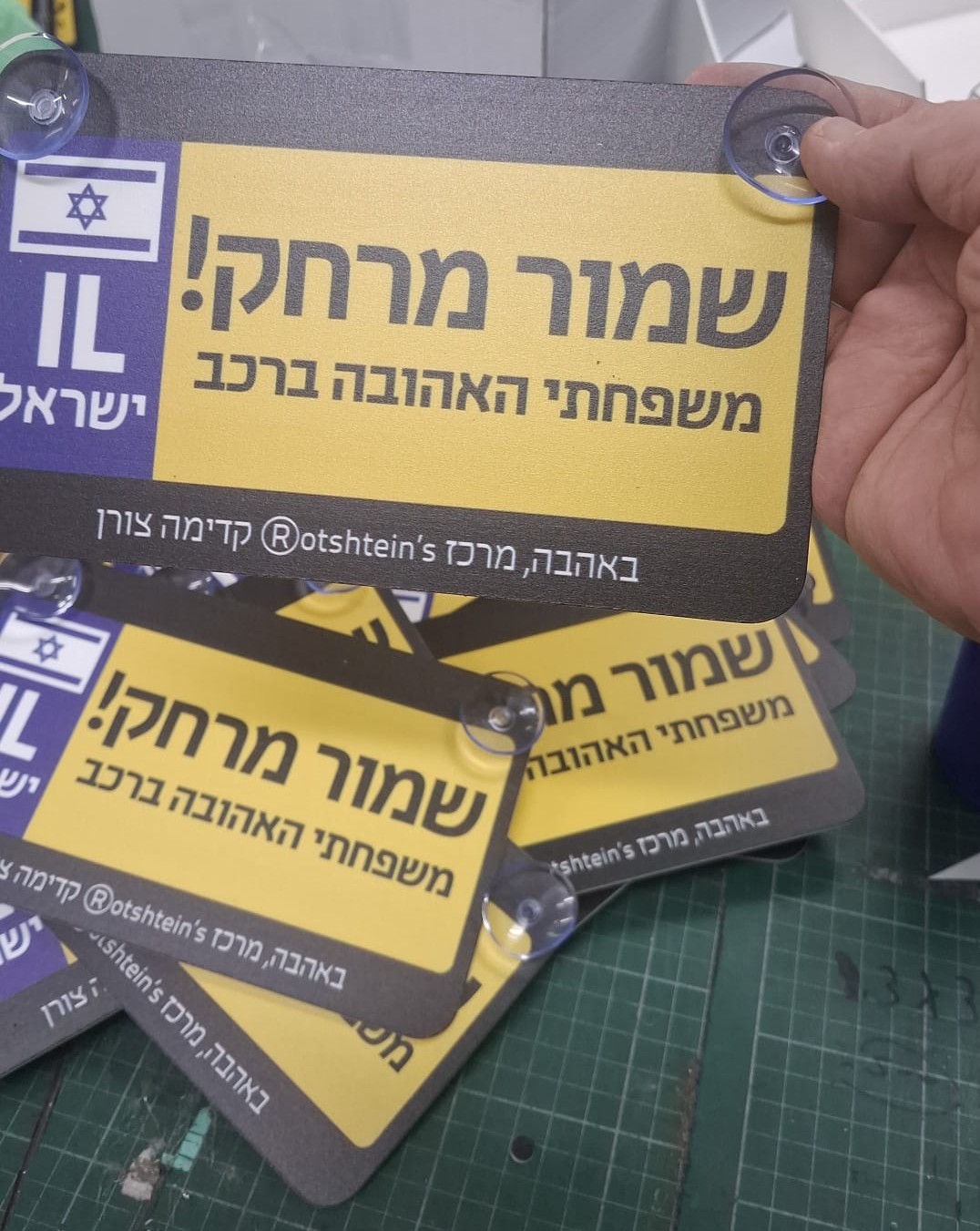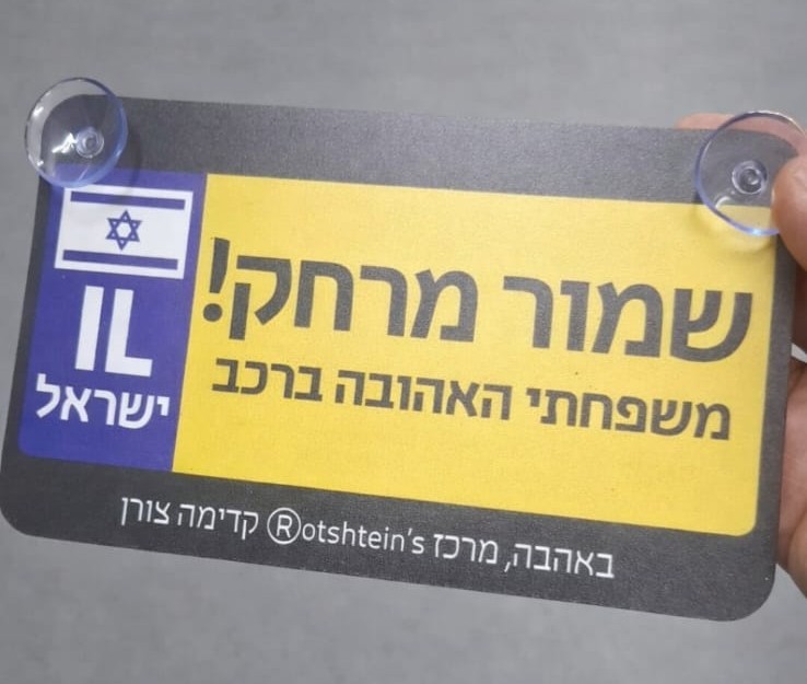 שלט לרכב עם מוצצים נצמד לשמשה עם עיצוב יחודי לפי דרישה כולל מוצצים להצמדה לשמשה
