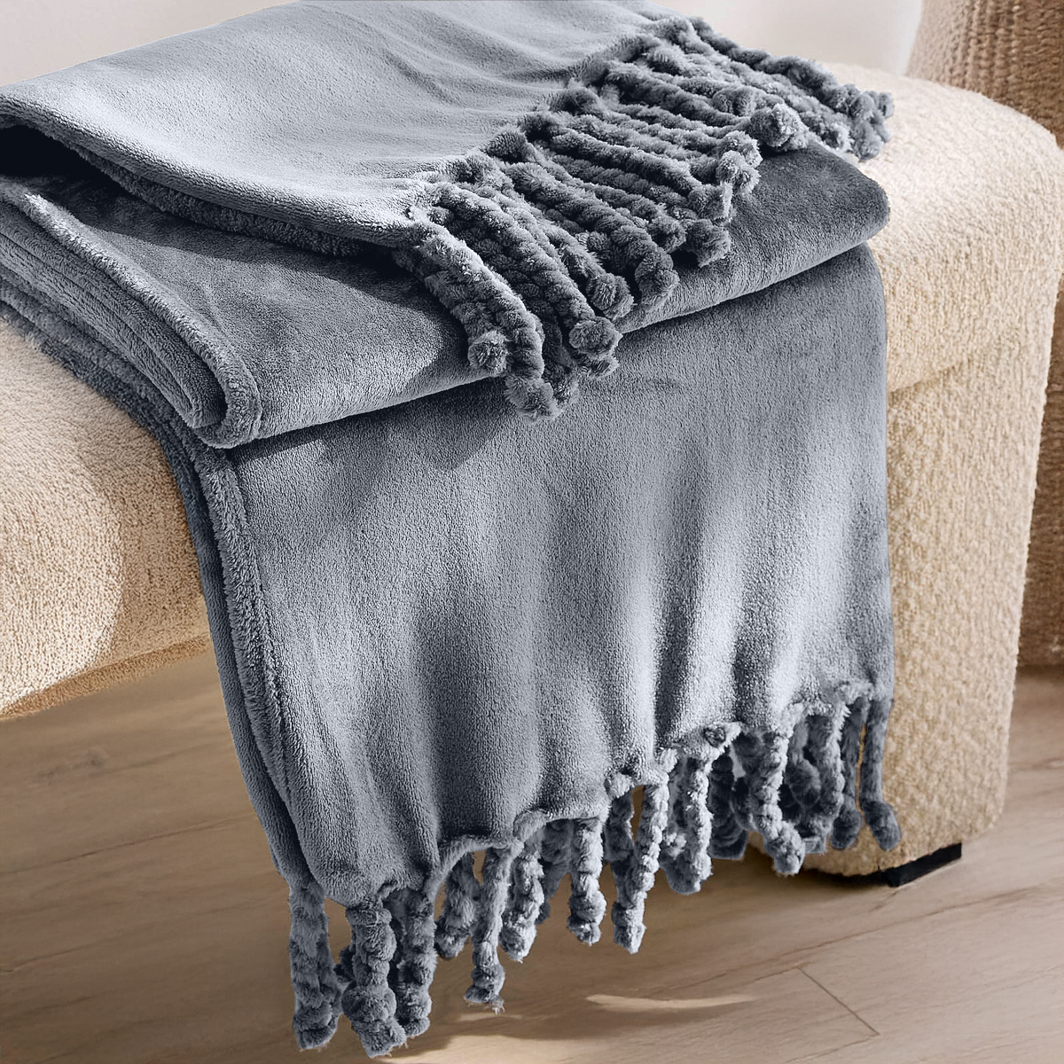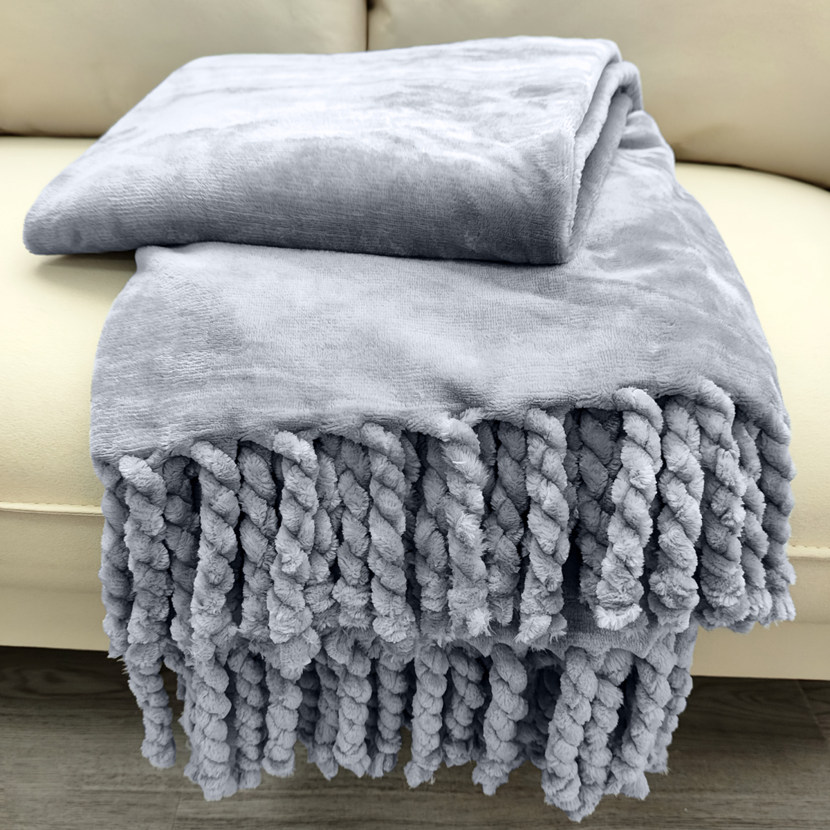 שמיכת ביסלי קורל פליז עם פרנזים מגולגלים