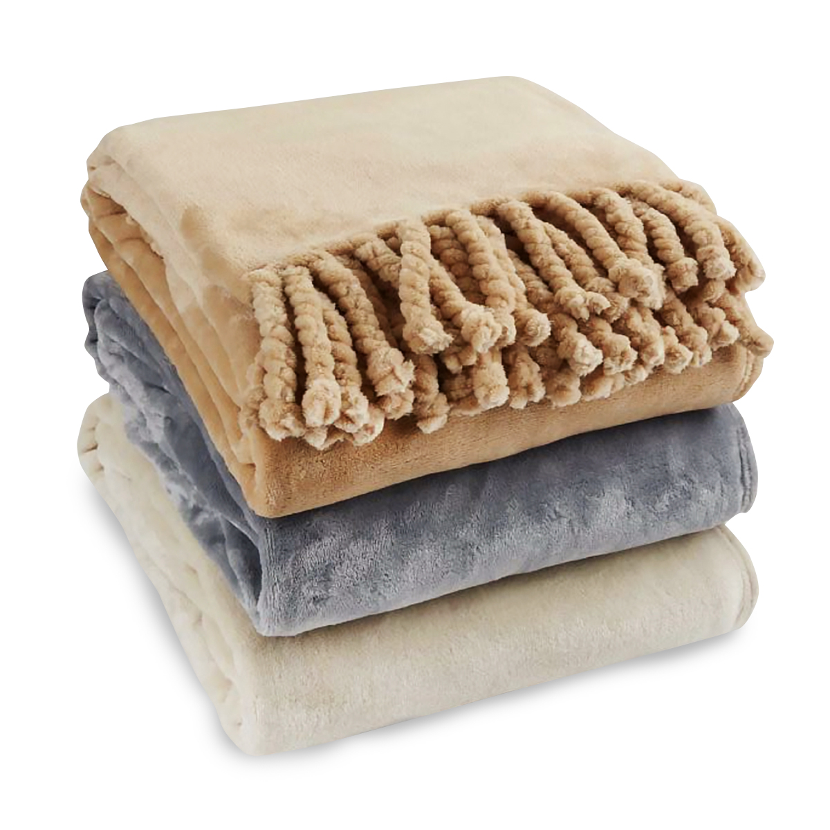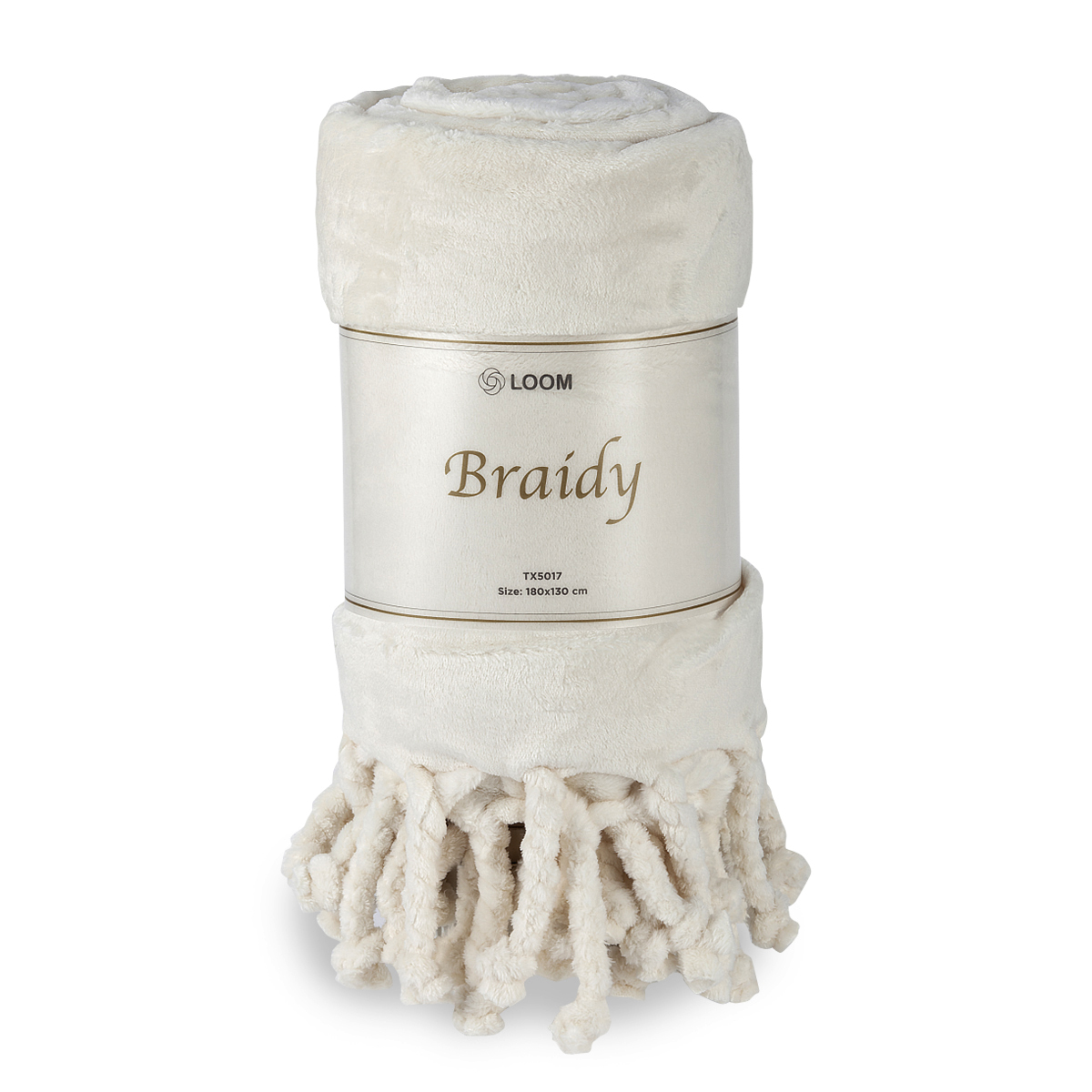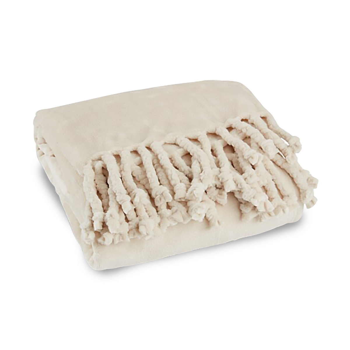 שמיכת ביסלי שמיכת קורל פליז עם פרנזים מגולגלים בצד הצר, משקל 280 גרם/מ"ר, מידה 130X180 ס”מ, אריזה בחבק.