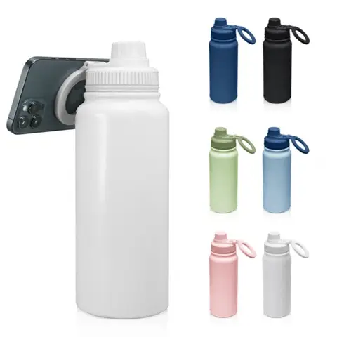 מכסה פטנט ייחודי עם ידית נשיאה מגנטית להצמדה לסמארטפון מתמגנט לסמארטפונים של אייפון הכוללים MAG SAFE וכולל מדבקת מגנט לכלל הסמארטפונים לבן מתאים להדפסת סובלימציה נפח 620ML